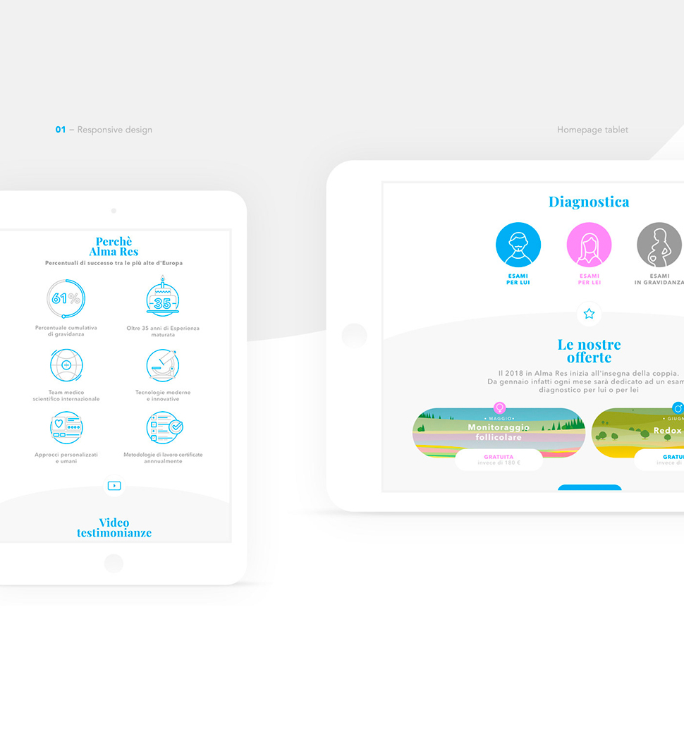 Dopo aver definito la strategia di marketing, ci siamo concentrati sulle priorità, realizzando in primis un nuovo sito web aziendale dal layout più moderno e coinvolgente, per riuscire a trasmettere meglio i valori distintivi di Alma Res e migliorare le performance lato Conversion Rate e SEO.