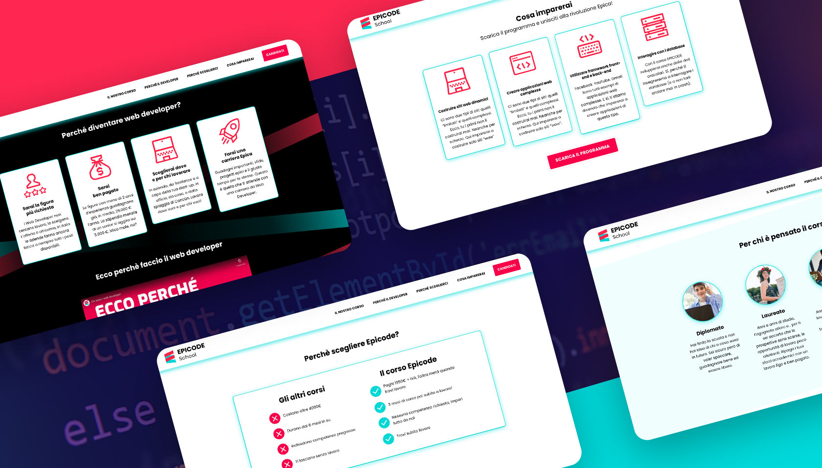 Per raggiungere un tasso di conversione ottimale rispetto al traffico generato dalle campagne di Paid Advertising, abbiamo progettato e sviluppato molteplici landing page e squeeze page, associate a diversi corsi della scuola e percorsi utente.