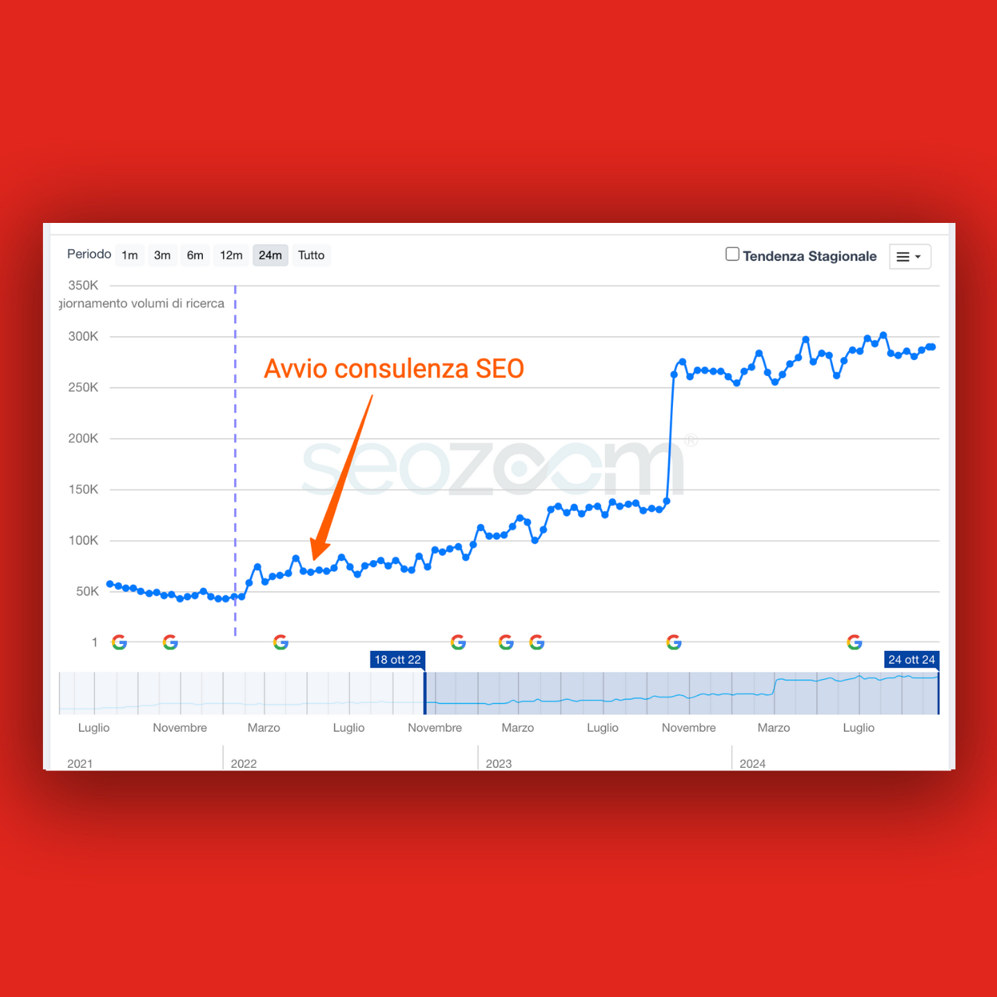 Grazie alle molteplici ottimizzazioni effettuate, siamo riusciti a migliorare notevolmente il ranking organico del sito, ottenendo un notevole impatto anche sulle vendite eCommerce: