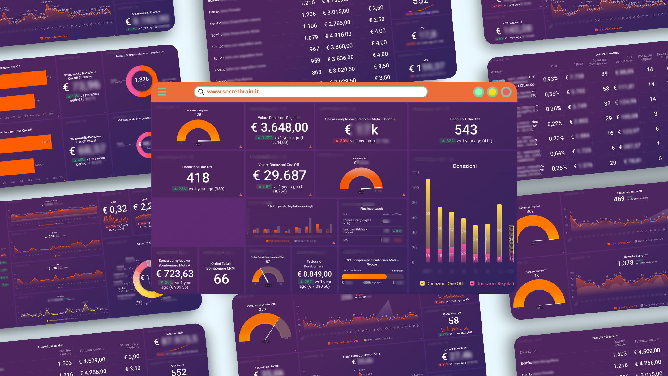 Le smart dashboard presenti in Secret Brain consentono di visualizzare i KPI in maniera ordinata e veloce.