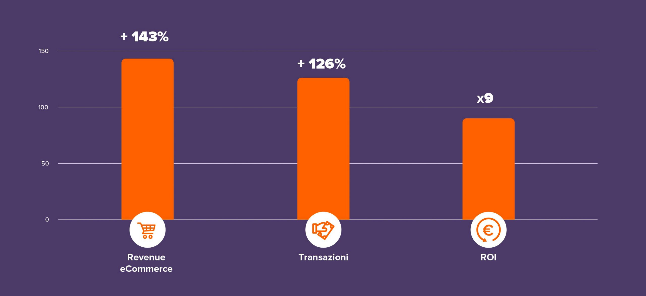 Sul fronte obiettivi, misurazione e ottimizzazione delle performance dell’eCommerce, sono stati definiti e tracciati specifici KPI all’interno di una Business Intelligence, che aggrega i dati da Google Analytics, dalla piattaforma eCommerce, dalle piattaforme di Paid Advertising e dai vari touchpoint dell’ecosistema digitale.