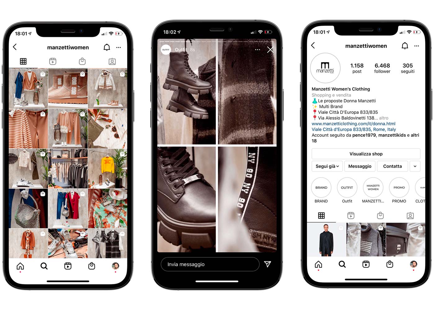 Secret Key si occupa pertanto dell’art direction e della produzione di contenuti foto e video degli outfit, effettuando regolarmente degli shooting fotografici. Tali materiali visual vengono quindi declinati per tutti i canali dell’ecosistema digitale Manzetti, andando ad alimentare e a rinfrescare il sito eCommerce, il canale email, ma soprattutto i profili social Facebook e Instagram.