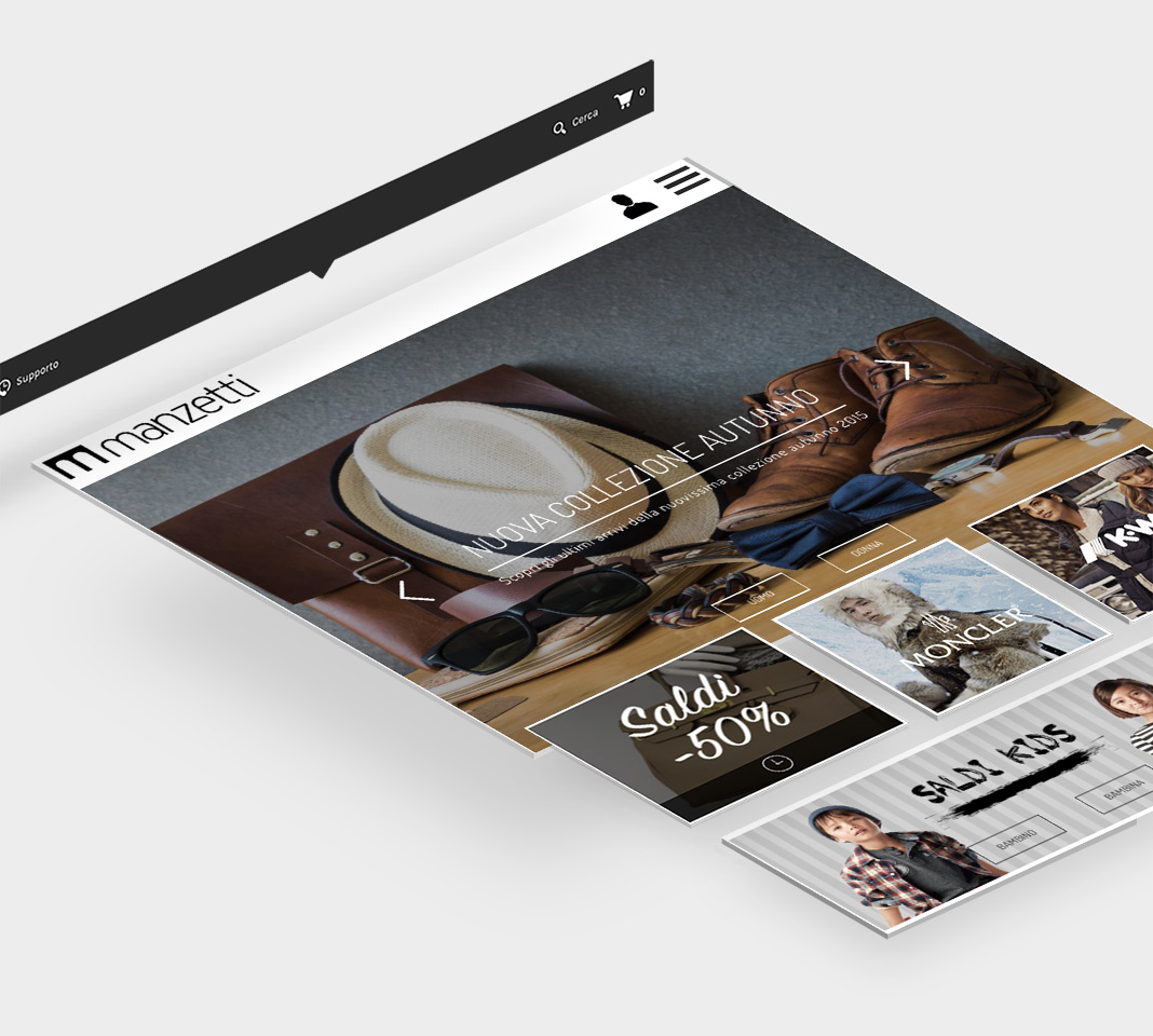 L’asset principale della digital strategy di Manzetti è senza alcun dubbio il nuovo sito eCommerce, che abbiamo ideato, disegnato e sviluppato da zero utilizzando la piattaforma Magento, che è stata customizzata e appositamente integrata con il gestione dei punti vendita e del magazzino.