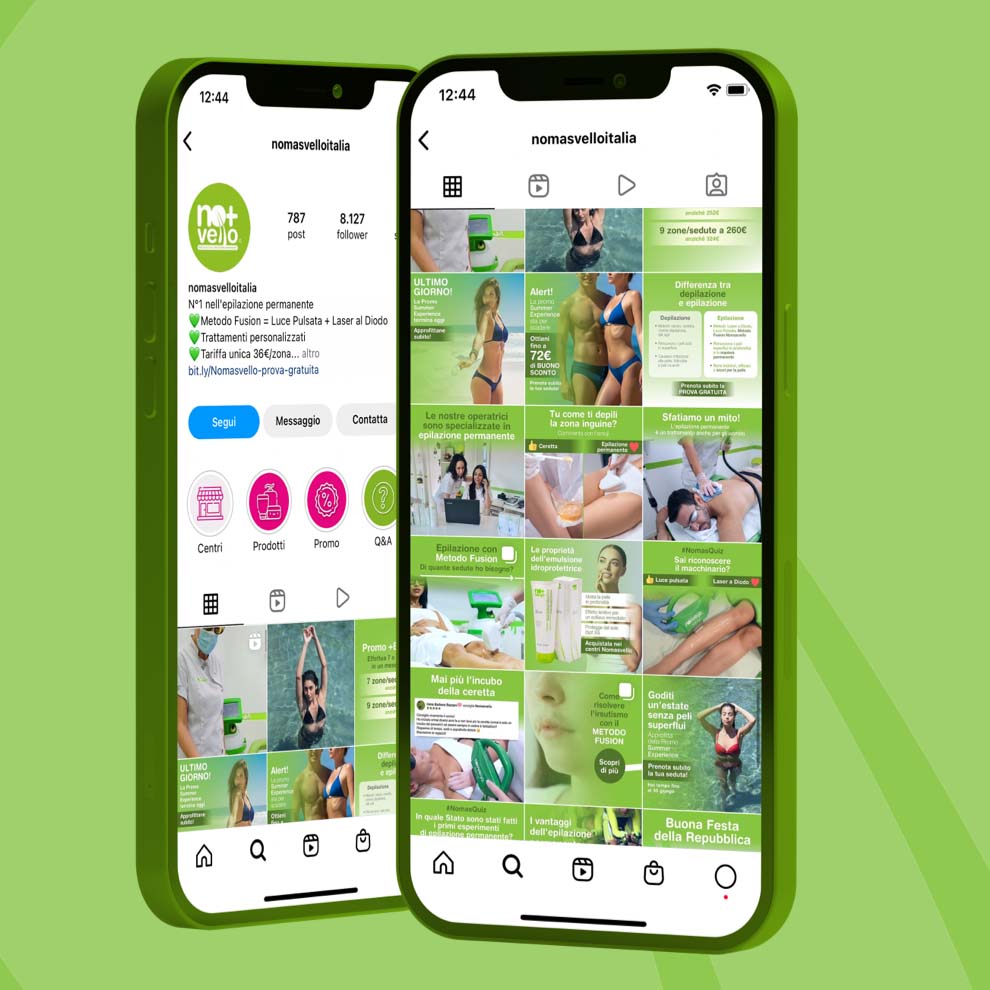 La strategia Social che abbiamo ideato per Nomasvello è totalmente incentrata sullo storytelling su Instagram e Facebook, due piattaforme imprescindibili per il settore beauty/estetica.