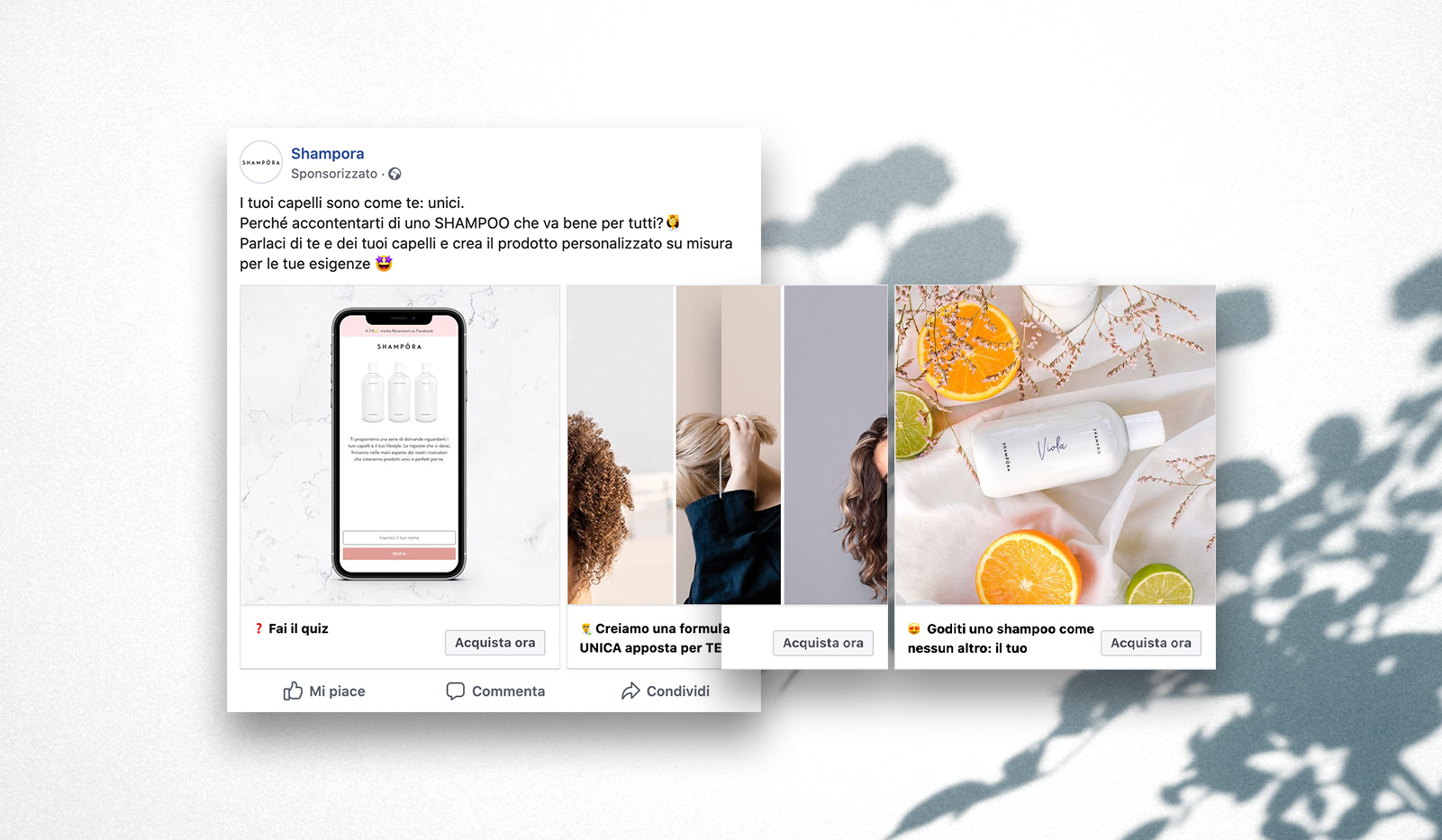 Lo scenario iniziale era quello di un’azienda giovane con una customer base in crescita, che investiva quasi esclusivamente in performance marketing ottenendo discreti risultati. L’esigenza espressa dai founder di Shampora consisteva nel continuare a scalare il business migliorando il ROAS/ROI di Marketing, allargando però il focus anche sulla costruzione di un brand forte e riconoscibile.