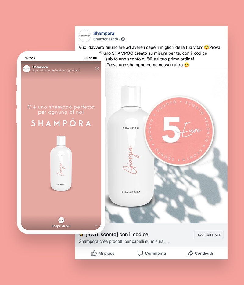 Per ognuna di queste fasi e canali abbiamo realizzato specifici tipi di messaggi pubblicitari, utilizzando copy e creatività che fanno leva su diversi angle di comunicazione, coerenti con la value proposition di Shampora. Per ogni canale abbiamo definito appositi KPI di misurazione per comprendere e massimizzare le performance.