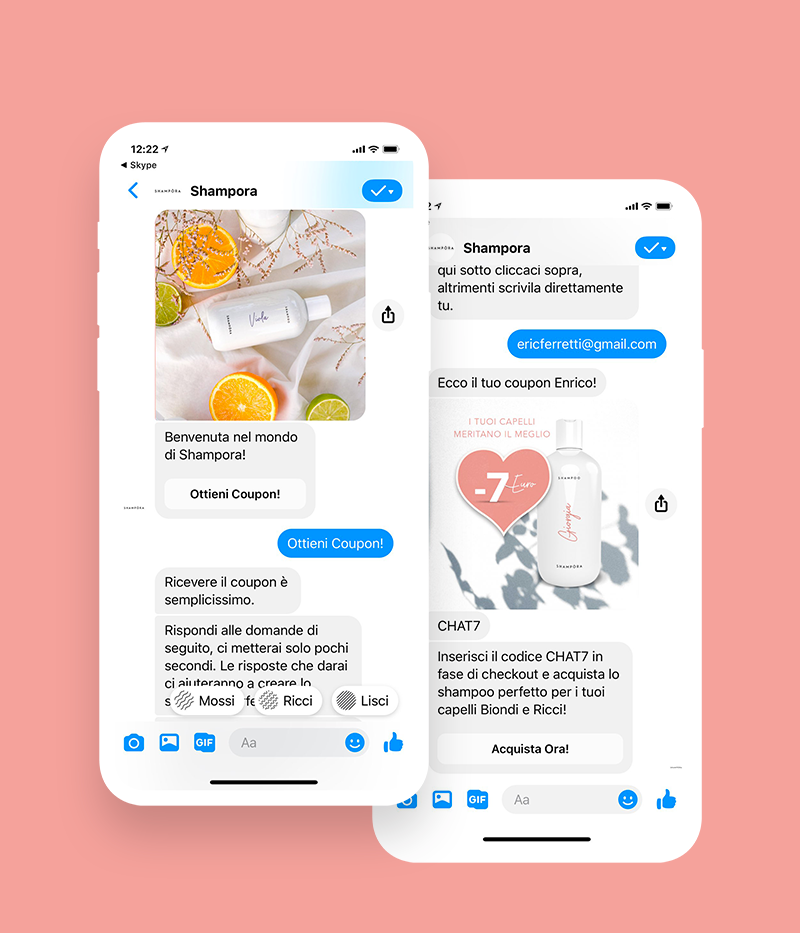 Email e chatbot su Facebook Messenger sono due canali fondamentali della strategia elaborata, poiché ci consentono di acquisire lead profilati, sui quali agire con la marketing automation per generare il primo acquisto, con specifiche leve commerciali e informative.